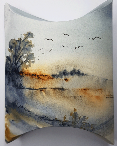 Handbemalte, faltbare Geschenkschachtel aus Aquarellpapier.Unikat!