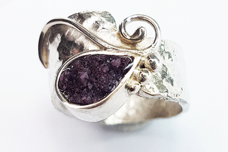 ein wunderschöner Ring in flambiertem Silber 925/- mit einem Tropfen aus Weinstein.