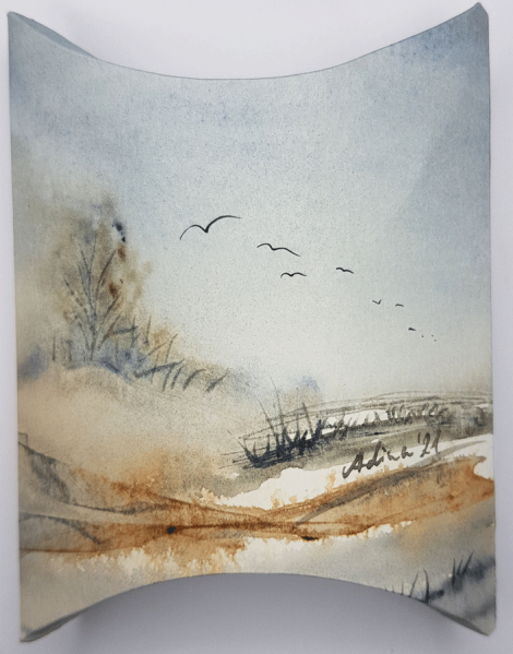Handbemalte, faltbare Geschenkschachtel aus Aquarellpapier.Unikat!