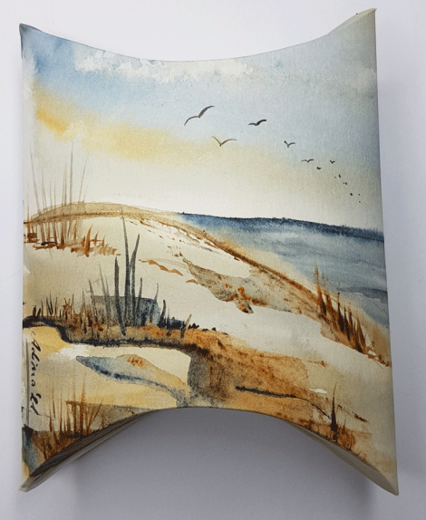 Handbemalte, faltbare Geschenkschachtel aus Aquarellpapier.Unikat!