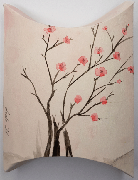 Handbemalte, faltbare Geschenkschachtel aus Aquarellpapier.Unikat!