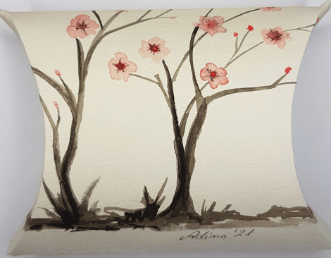 Handbemalte, faltbare Geschenkschachtel aus Aquarellpapier.Unikat!