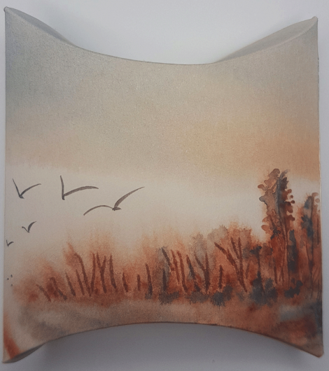 Handbemalte, faltbare Geschenkschachtel aus Aquarellpapier.Unikat!